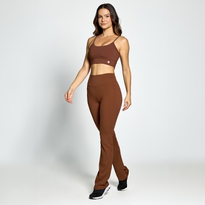 Calça Legging Poliamida com Bolso Invisível no Cós Café