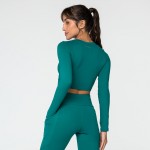 Top Cropped Poliamida Manga Longa Verde Escuro