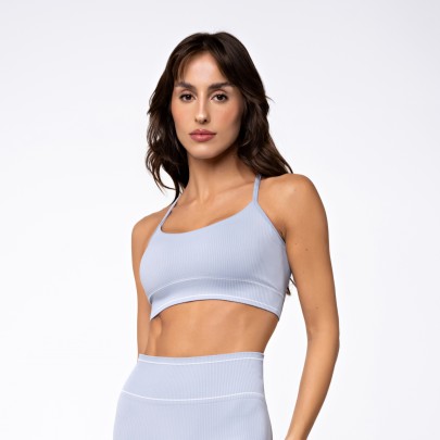 Top Seamless Canelado Stripes Regulável Azul Bebê